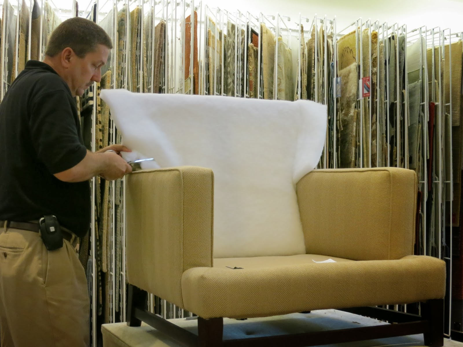 After the right amount of "plush" are added Steve beings to attach the Kravet fabric. |